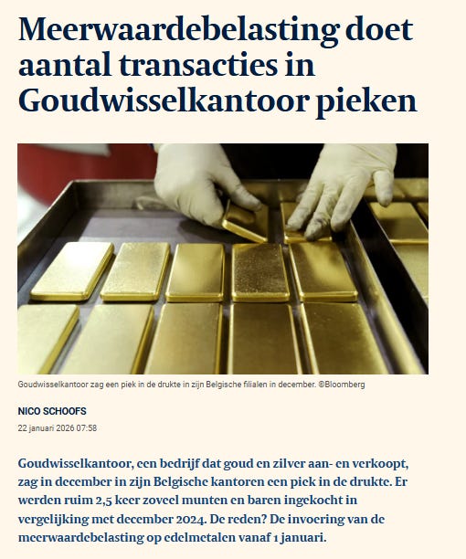 Mensen verkopen goud en zilver massaal vóór 1 januari, puur om de meerwaardebelasting te ontwijken.