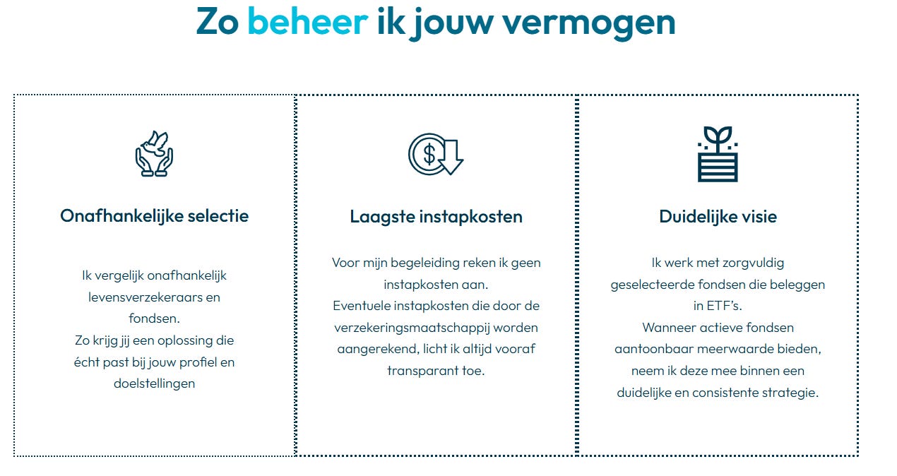 Naast het beheer blijf ik ook beschikbaar als sparringpartner. Iemand bij wie je kan aftoetsen, bijsturen en nadenken over keuzes, zonder ruis of verkooppraatjes. Rust, overzicht en vertrouwen staan daarbij centraal.