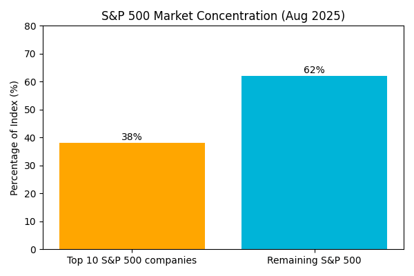 Nog zo’n opvallend cijfer: de top 10 bedrijven in de S&P500 vertegenwoordigen 38% van de volledige index. Dat is een historisch hoge concentratie.