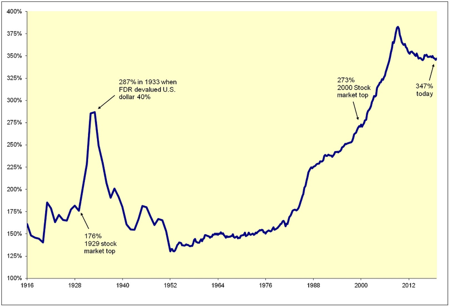 De zogeheten Buffett‑indicator (marktkapitalisatie van Amerikaanse aandelen als percentage van het bbp) stond in het tweede kwartaal van 2025 op 215,6 %, wat 56,5 % boven de lange‑termijntrend ligt. Dat is erg hoog in vergelijking met het historische gemiddelde.